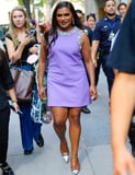 "Never Have I Ever" creator Mindy Kaling is making press rounds in New York City to promote the release of season three on Netflix, and she's continuing to show off her vibrant wardrobe. With the help of stylist Hayley Atkin, "The Office" alum and creative genius selected a purple Oscar de la Renta shift dress for a visit to NBC's "Today" show, finished with a crystal-embellished trim around the sleeves and neckline.